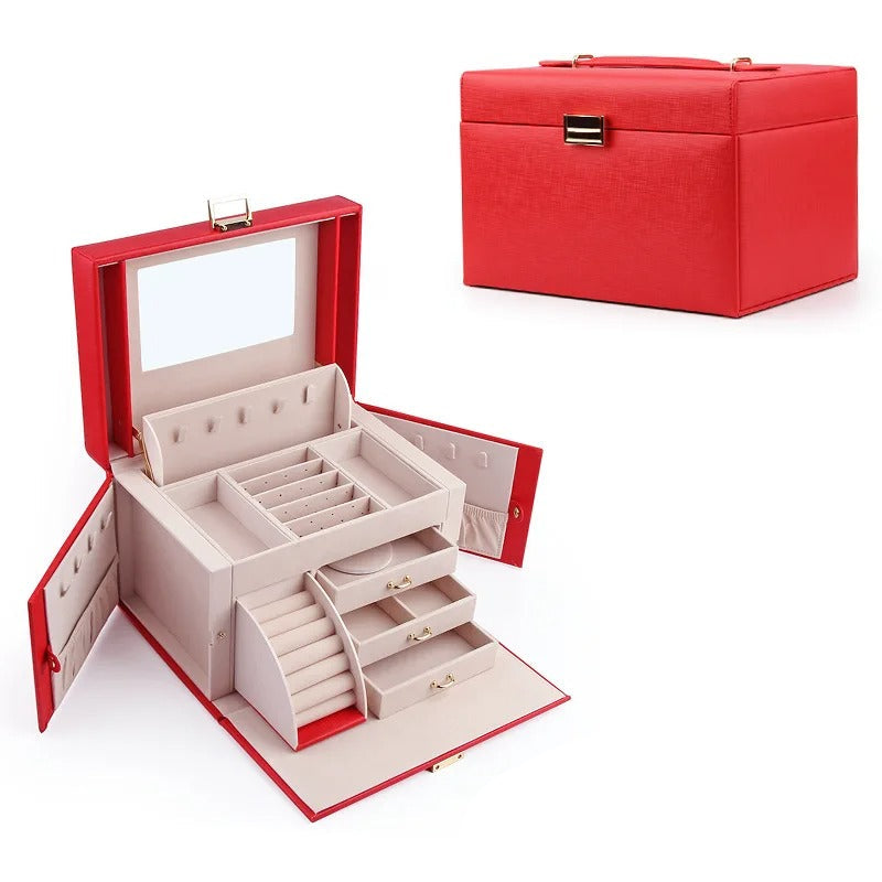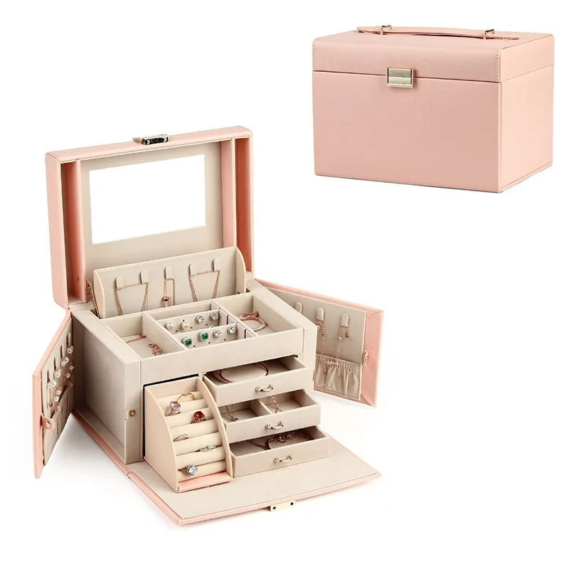 O cutie de bijuterii elegantă și funcțională, concepută pentru a vă organiza accesoriile de zi cu zi. Datorită capacității sale generoase, compartimentelor bine concepute și mini-sertarelor, aceasta păstrează fiecare bijuterie perfect organizată și protejată. Ideală pentru casă, călătorii sau ca un cadou rafinat.